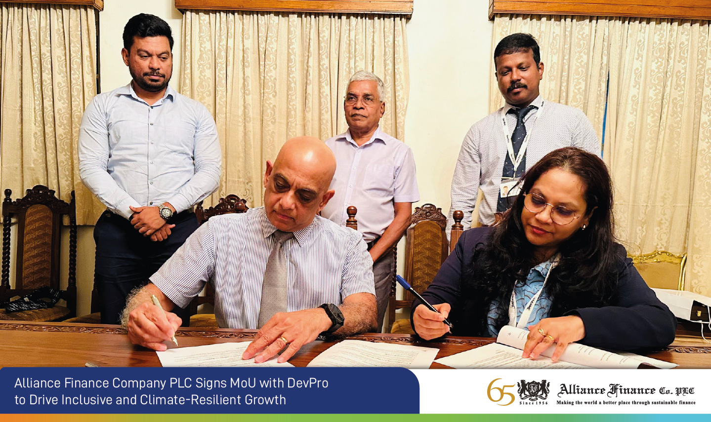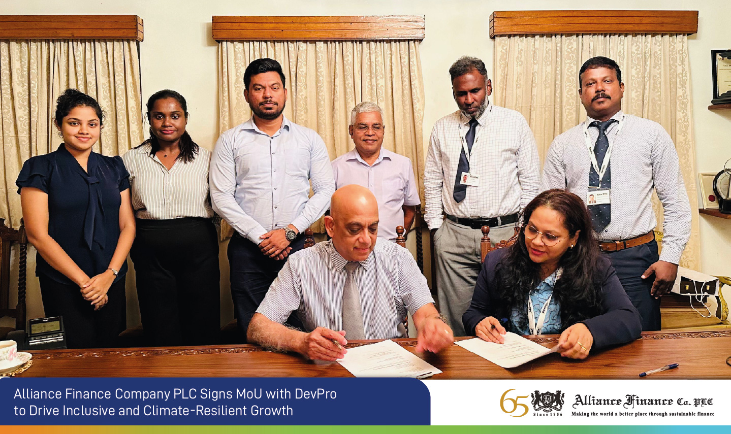 Marking a significant milestone, DevPro signed a Memorandum of Understanding (MoU) with Alliance Finance Company (PLC) to Promote Innovative Financing for Inclusive Economic Development. The MoU was signed by the Executive Director of DevPro, Chamindry Saparamadu and the Deputy Chairman/Managing Director of AFC, Romani de Silva in the presence of officials from both organizations on 11th September.